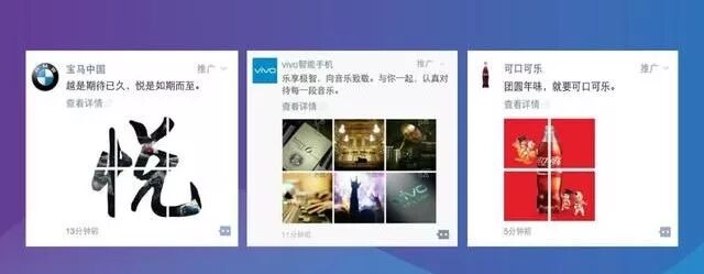 微信朋友圈原生广告。最开始是大家熟知的宝马、手机和可口可乐的广告精准投放,当时的门槛很高,需要上千万的预算。现在已经投放门槛降低,一般是有公众号的企业几千元的预算就可以做了。具体展现形式,就是点击“查看详情”-进入微页面填表单留下线索。